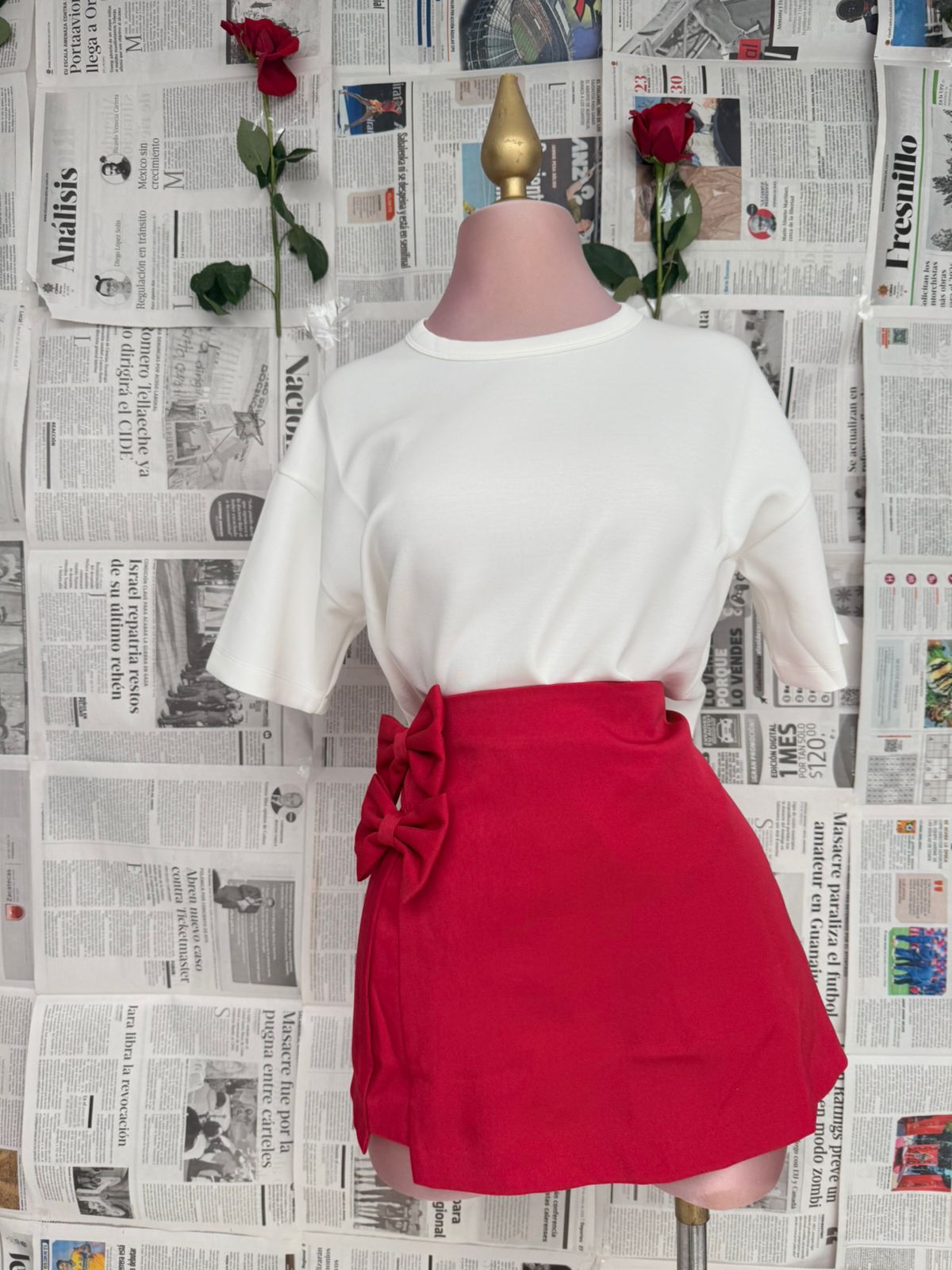 Falda roja con moño