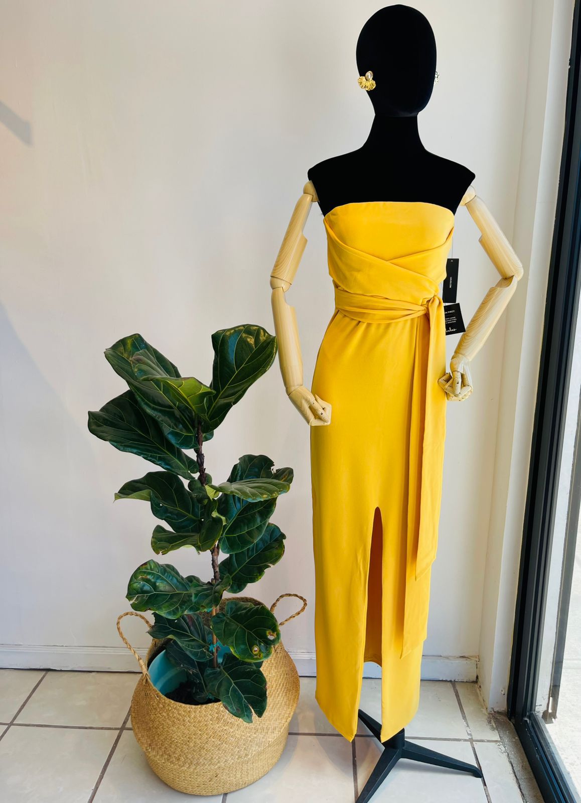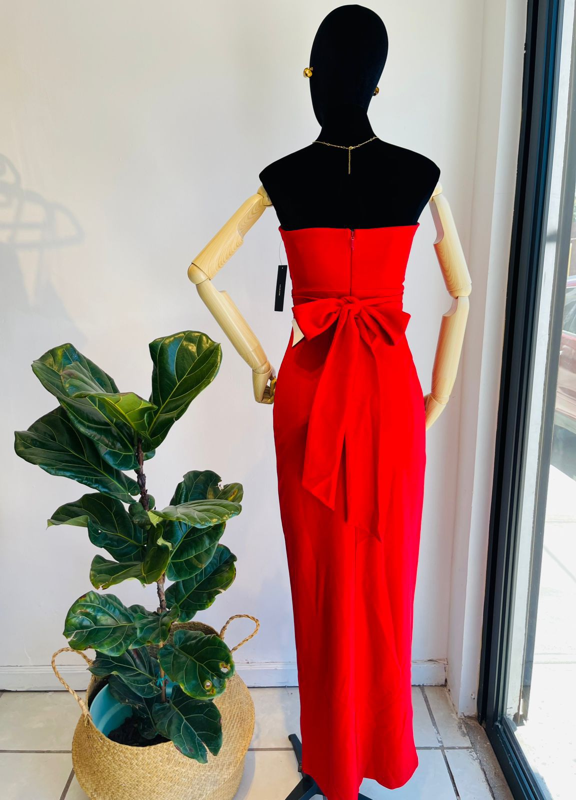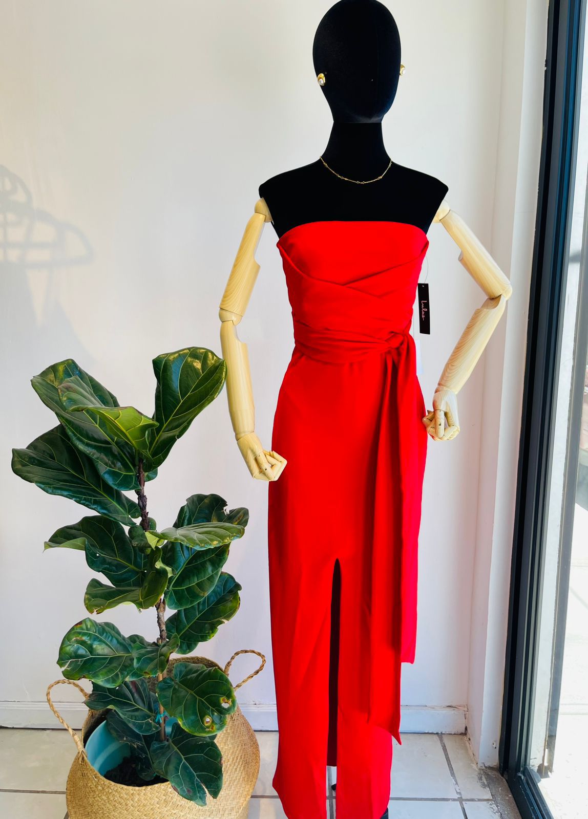 Vestido largo abertura frontal, moño ya sea enfrente o otras