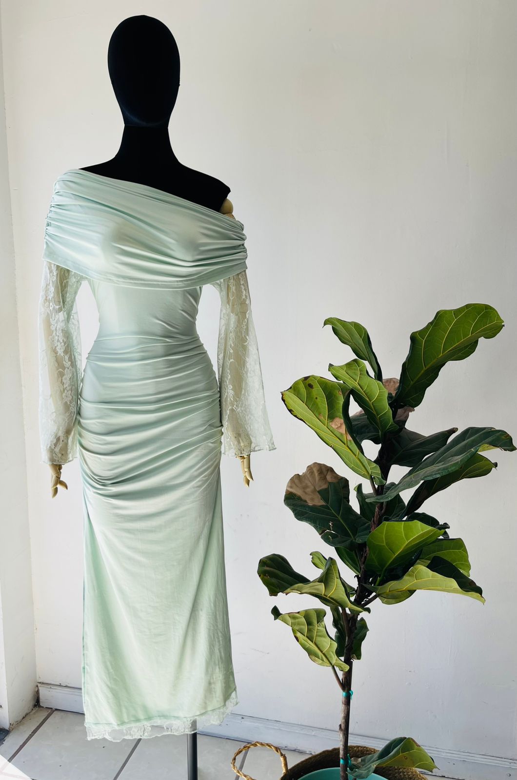 Vestido mangas encaje