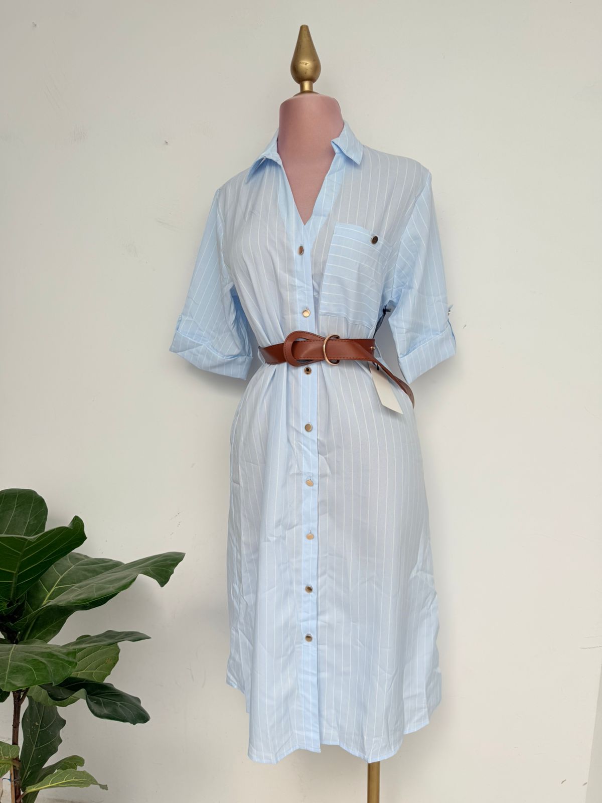 Vestido rayado con cinto